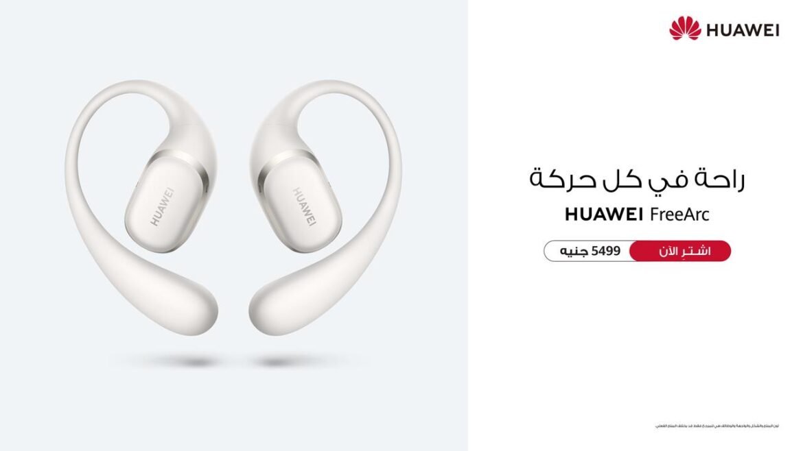 تتميز HUAWEI FreeArc بتصميم C-bridge الأيقوني مع شكل جديد لخطافات الأذن. يجمع بين الهندسة المتطورة والتصميم المريح ليقدم تجربة صوتية مفتوحة لا مثيل لها، مع صوت قوي وجهير نابض وراحة مثالية في جميع الظروف. تتوفر HUAWEI FreeArc الجديدة عبر الموقع الرسمي لشركة هواوي ومجموعة من المتاجر المختارة بسعر 5499 جنيهًا مصريًا