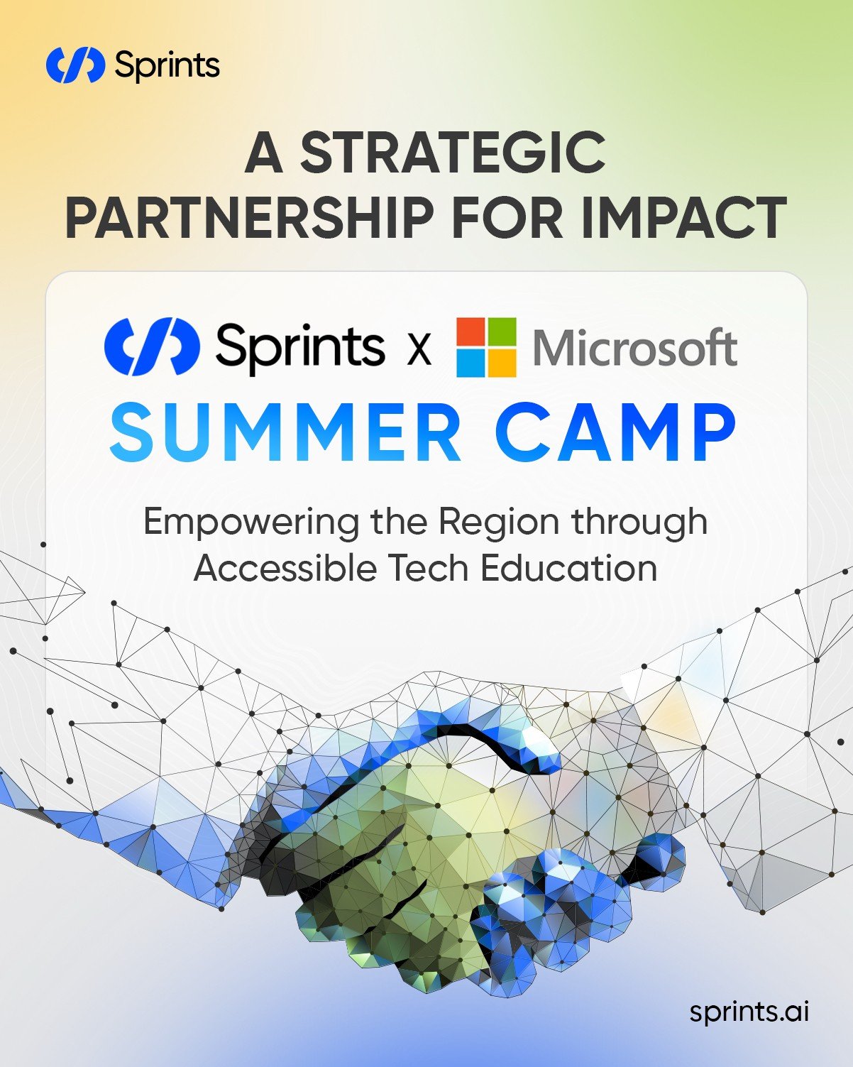 في واحدة من أبرز المبادرات المؤثرة في مجال تمكين الشباب بالمنطقة، أعلنت شركة سبرينتس، منصة تكنولوجيا التعليم المدعومة بالذكاء الاصطناعي، عن تعاونها مع Microsoft Ambassadors لإطلاق مبادرة المعسكر الصيفي Sprints x Microsoft التي وفرت تجربة تعليمية متكاملة و ممولة بالكامل، بهدف تزويد الشباب بالمهارات التقنية الأكثر طلباً في سوق العمل. وقد حققت المبادرة نجاحًا غير مسبوق.